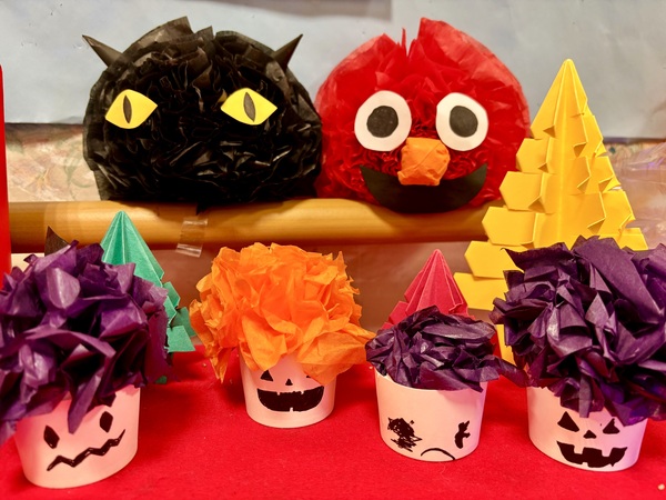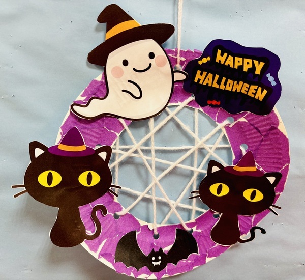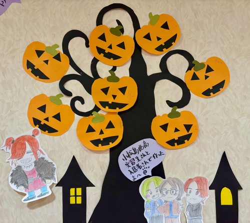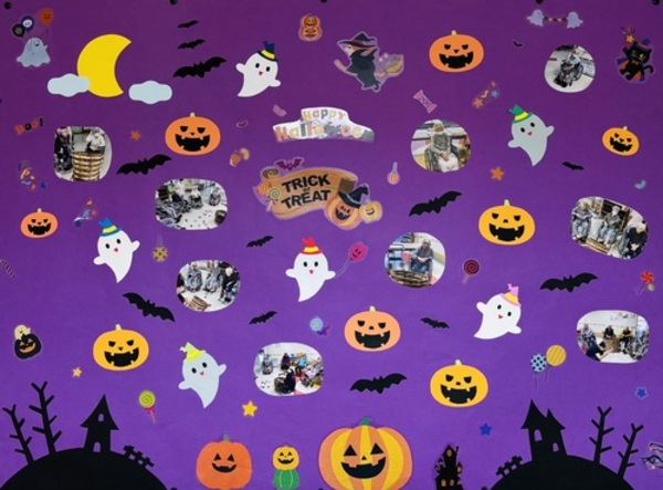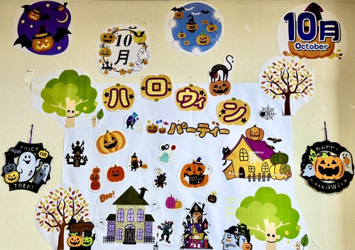 ハロウィンとは、毎年10月31日に行われる海外の祭りです。当施設の中もこの時期はハロウィンらしい利用者様の作品の展示や飾りつけをしていて賑やかです。